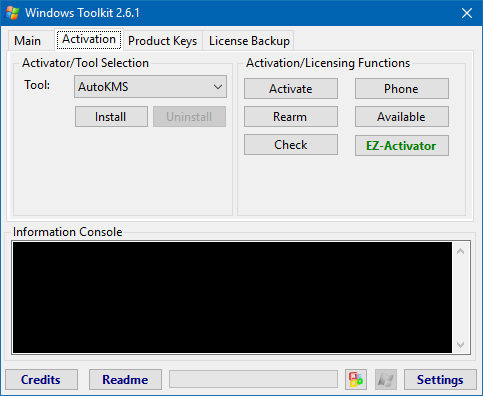 KMS Tools Portable - универсальный исчерпывающий портативный набор инструментов для активации, резервного копировании активации, поиска ключей в интернете и проверки их на действительность, а также очистки следов KMS-службы для Windows XP, Vista, 7, 8, 8.1, 10, 11, Server 2008, 2008 R2, 2012, 2012 R2 и Office 2010, 2013, 2016 VL редакций.