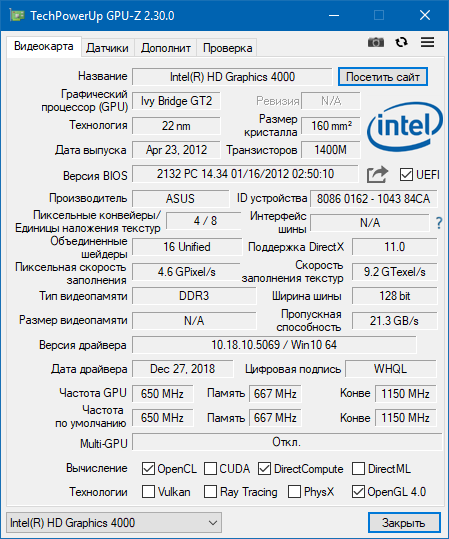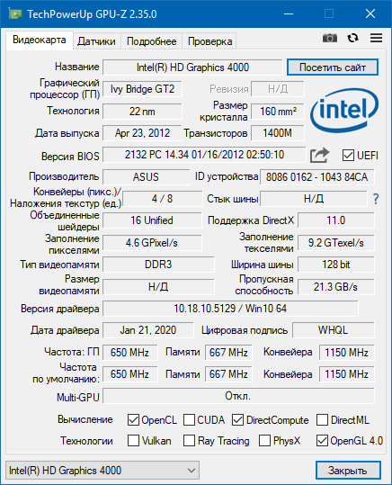 Cwer.ws представляет новую версию программы для получения сведений о графическом адаптере. GPU-Z поддерживает видеокарты NVIDIA и ATI. Утилита поможет определить, какая модель видеокарты установлена ​​на вашем компьютере, узнать интерфейс подключения, показать, какой именно графический процессор используется (версия BIOS, номер ревизии чипа, частота в 2D, 3D-режимах и при разгоне, сведения о поддержке DirectX).