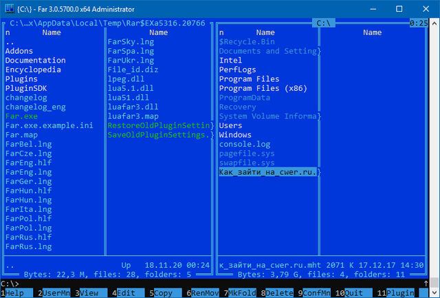 Far Manager — консольный файловый менеджер, предназначенный для компьютеров с ОС Windows. Приложение имеет простой и удобный интерфейс для работы с файловыми системами (как реальными, так и эмулированными) и файлами.