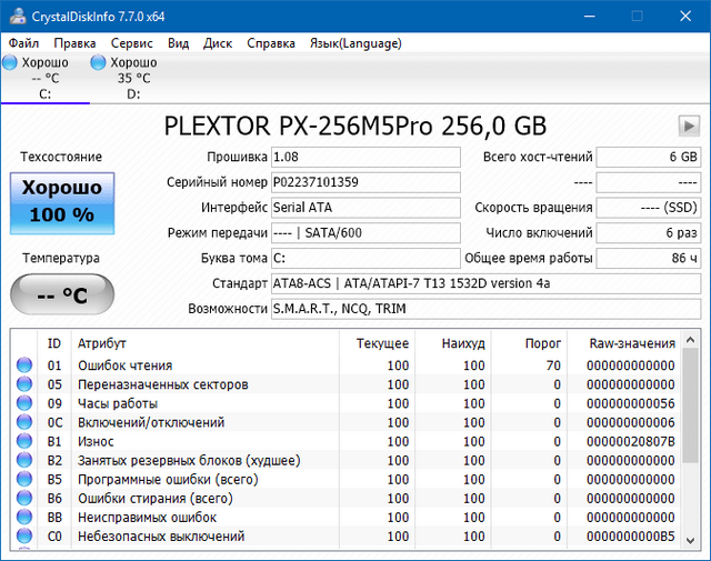 CrystalDiskInfo – следит за «здоровьем» жестких дисков, поддерживающих технологию самодиагностики S.M.A.R.T. Осуществляет мониторинг и дает общую оценку состояния вашего диска. Также выдаёт подробную информацию о жестких дисках, установленных в компьютере (прошивка, серийный номер, стандарт, интерфейс, общее время работы и др.) и выводит параметры атрибутов S.M.A.R.T. (ошибки чтения, производительность, запуски/остановки шпинделя, время поиска дорожки, количество циклов включения-выключения, ошибки секторов и многое другое). Может выводить в трее индикаторы с температурой каждого накопителя, строит график изменения температур. Позволяет управлять настройками производительность/шум.
