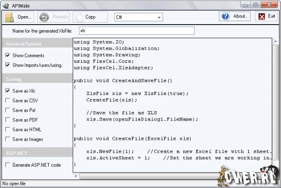 TMS Flexcel Studio for .NET - cамая мощная утилита для конвертирования и создания отчетов из файлов Excel и PDF в Visual Studio .NET 2003, 2005 и Delphi 8, 2005. При помощи этого решения происходит быстрая генерация Excel файлов для WinForms, WebForms ASP.NET, PocketPC приложений и веб-сервисов. Программа позволяет производить экспорт PDF файлов, имеет быстрый и надежный XLS механизм, способный к генерации тысяч файлов в минуту, имеет поддержку всех форматов Excel от 97 и выше, а также поддержку более 200 функций Excel, позволяет читать и писать зашифрованные XLS файлы, экспортировать в HTML 4.01 или XTHML 1.1 и другие совместимые стандарты и многое другое.