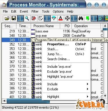 Программа Process Monitor является усовершенствованным инструментом отслеживания для Windows, который в режиме реального времени отображает активность файловой системы, реестра, а также процессов и потоков. В этой программе сочетаются возможности двух ранее выпущенных программ от Sysinternals: Filemon и Regmon, а также огромный ряд улучшений, включая расширенную и безвредную фильтрацию, всеобъемлющие свойства событий, такие как ID сессий и имена пользователей, достоверную информацию о процессах, полноценный стек потока со встроенной поддержкой всех операций, одновременный запись информации в файл и многие другие возможности. Эти уникальные возможности делают программу Process Monitor ключевым инструментом для устранения неполадок и избавления от вредоносных программ.