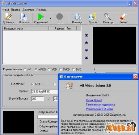 Программа поможет вам собрать несколько коротких видеофайлов в один большой. Может работать со следующими форматами файлов: AVI, DivX, MPEG, WMV, ASF. Интересной особенностью является возможность сборки видео, закодированных разными форматами.