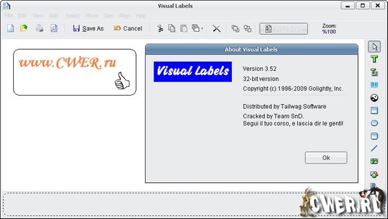 Visual Labels - Программа для изготовления этикеток с множеством настроек и удобным в работе интерфейсом. Этикетки можно создавать практически любые - как по форме, так по содержанию, используя при их создании любые из имеющихся шрифтов и графику (поддерживается BMP, DIB, JPG, JIF, PCX, RLE, TGA, ICO и WMF). Сама изготавливаемая этикетка отображается на экране монитора в том виде, как она будет выглядеть уже отпечатанной.