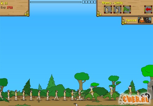 Очередная флеш-войнушка! Бьём врага - защищаем свою пещеру - зарабатываем денежки - модернизируем защиту и войско - постепенно переползаем из каменного века в будущее...