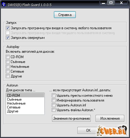Бесплатная программка, защищающая от вирусов и троянов, которые пытаются запуститься при вставки USB носителя. Программа из класса "Установил и забыл". Русский интерфейс присутствует. Также программа имеет функцию отключения автозапуска различных сменных носителей.