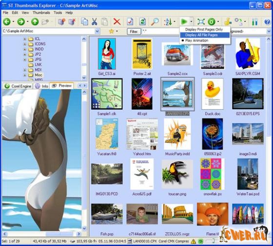 Уникальный и практически единственный в своем роде, скоростной и не требовательный к системным ресурсам просмотрщик эскизов картинок ("превьюшек" / thumbnails) с полным набором функций файл-менеджера для управления любыми графическими файлами и снабженный интерфейсом в стиле проводника.