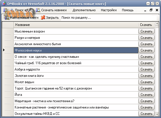 DMBooks - программа для удобного скачивания книг из интернета. Огромный архив научной литературы всех имеющихся в сети текстов и иных материалов (особенно — философско-направленных) из мелких электронных библиотек, файлообменных сетей и иных малоизвестных мест Интернета.