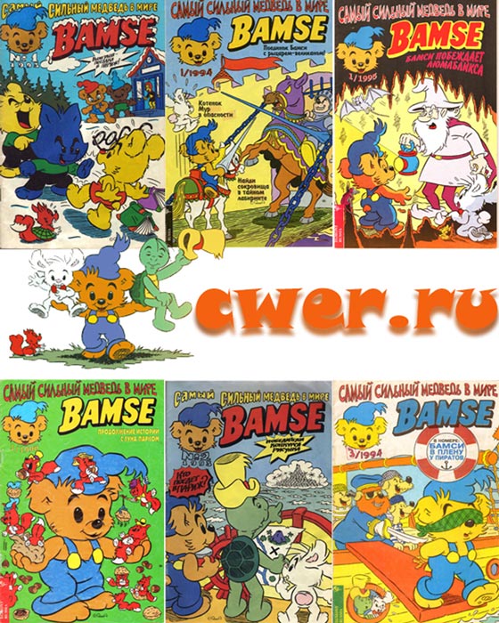 Самый сильный в мире медвежонок Бамси – герой шведских мультфильмов для самых маленьких зрителей и комиксов по мотивам мультфильмов. Каждое утро Бамси съедает банку чудо-меда, который умеет готовить только его бабушка. Мед делает Бамси очень сильным, но свою силу он использует только для того, чтобы помочь друзьям. А друзей у Бамси немало. Главный друг Бамси – кролик Попрыгунчик. Он очень боязливый, но с таким другом, как Бамси, бояться нечего. Попрыгунчик выращивает морковку, которую очень любит. Черепашкин изобретатель, он постоянно что-нибудь придумывает. Но одно его изобретение сильно усложняет общение с Черепашкиным – это чудо-будильник, который звонит каждый раз, когда Черепашкину пора есть или спать. Изобретатель строго соблюдает режим, и если звонок звенит, он ложиться спать или начинает закусывать, где бы не находился. В любой истории не обойтись и без отрицательного героя. В данном случае это Черный Волк. Волк живет в лесу и постоянно делает всякие пакости, вместо того, чтобы дружить с Бамси и остальными обитателями сказочного леса. Есть и злой Крез, мышь-бизнесмен, который постоянно хочет заработать на друзьях Бамси состояние. Но это ему не удается. Комиксы о Бамси в Швеции издавались с 1973 года. В России комиксы о Бамси появились в начале девяностых годов.