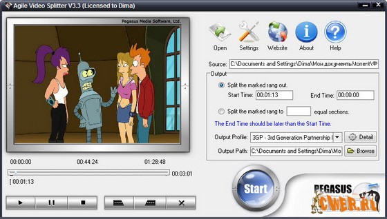 Agile Video Splitter является лучшей в мире программой для разрезания AVI, DivX, Xvid, MPEG-1, MPEG-2, WMV, MP4, MOV файлов. Она все делает за 3 шага: открыть видео, выбрать диапазоны, нажать кнопку старт. Также в нее встроены медиа кодеки и их не надо устанавливать дополнительно.