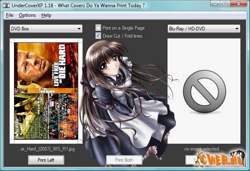 Программа для печати CD/DVD обложек. Эта бесплатная утилита поддерживает большинство распространённых графических форматов файлов, а именно: jpeg, gif, png и bmp. Программа позволяет создавать обложки как для CD, DVD, так и для видео кассет.