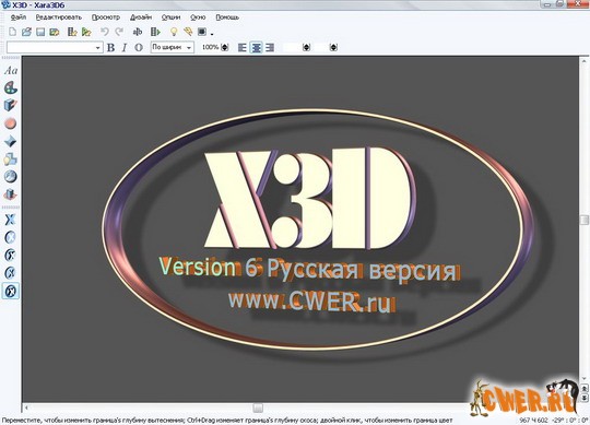 Xara3D - программа для создания трехмерных и анимированных текстов, включая самые разнообразные заголовки, логотипы и баннеры, в том числе и во флэш, быстрой разработки трехмерных кнопок и других небольших графических объектов, а также для создания скринсейверов.