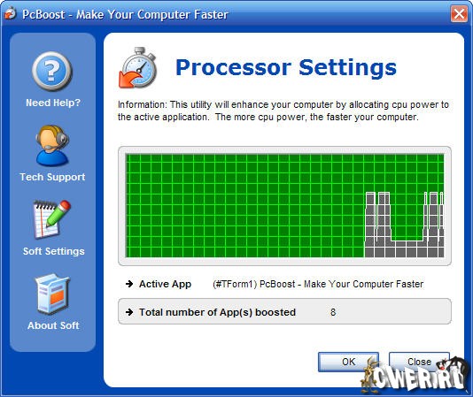 PcBoost - программа увеличивающая быстродействие компьютера за счет выставления программ приоритетов. PcBoost автоматически выставляет приоритеты для запущенных программ, что позволяет с максимальной эффективностью использовать мощность вашего процессора.