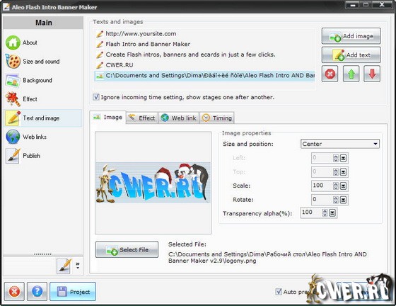 C Selteco Flash Designer вы сможете создавать анимации для вашего Вебсайта, используя более 130 эффектов таких как Исчезновение, Изменение масштаба или Вращение. Анимированные рисунки, фигуры или текст, звук также без проблем добавляются к Вашей Flash-анимации. ЗДесь же можно определить OnClick или OnOver действия для различных кнопок. Конечно, в этой программе можно сразу же сделать экспорта анимации в формат html. Selteco Flash Designer работает со всеми HTML редакторами, включая Microsoft FrontPage, Macromedia Dreamweaver или GlobalScape CuteSite.