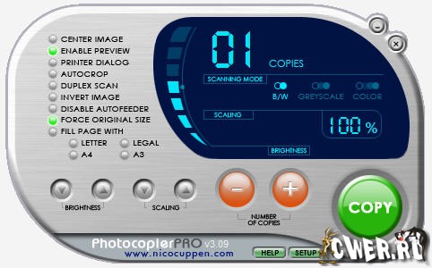 Обновилась Photocopier Pro v3.09 - Данная утилита превратит ваш компьютер в настоящий ксерокопировальный аппарат. Если у вас есть принтер со сканером, то с помощью Photocopier вы сможете объединить их в одно фотокопировальное устройство.Просто отправьте нужный документ на сканер, запустите программу, нажмите кнопку "Copy" и через несколько секунд ваш принтер распечатает копию документа.