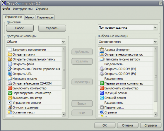 Tray Commander может заменить множество программ, таких как: запускатели программ, выключатели/перезагружатели компьютера, открыватели/закрыватели дверцы CD-ROM, текстовставлятели, папкооткрыватели и скринсейверзапускатели. И это все программа может делать из полностью настраиваемых меню в трее или с помощью "горячих" клавиш! Но и это еще не все! Вы можете настроить внешний вид меню, как захотите. Кроме этого программа может выполнить сразу несколько действий подряд по одной команде. Также Вы сможете настроить меню по щелчку средней кнопкой мыши в любой области экрана.