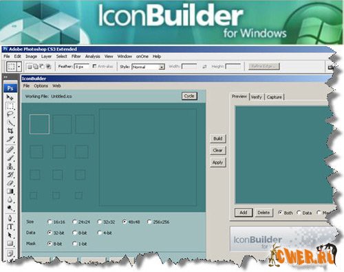 IconBuilder v2.0 - это фильтр для Adobe Photoshop, с помощью которого созданную графику можно преобразовывать в иконки, причем как "простые", так и те, что предназначены специально для Windows XP - со сглаженными краями, с тенью и и любыми другими эффектами, доступными в Фотошопе.
