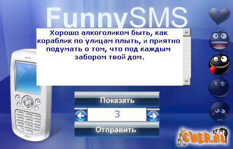 Генератор веселых смс, содержащий самую большую базу смсок. В одной программе Funny SMS собраны: любовные смс, пошлые смс, смс-афоризмы, смс розыгрыши, смс обломы, прикольные смс, смс поздравления. База смс регулярно пополняется.