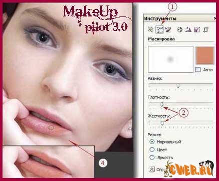 MakeUp Pilot предназначена именно для работы с портретами. С ее помощью можно удалить прыщики, веснушки, морщины, ямочки и другие нежелательные особенности лица. Программу также можно использовать для подчеркивания макияжа и отбеливания зубов.