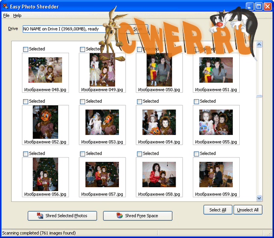 Easy Photo Shredder - небольшая и простая в использовании программа для полного и безопасного удаления фотографий с карт памяти, а также для стирания уже удаленных фотографий из свободного пространства карты памяти. После полного уничтожения фотографий с помощью данной программы, уже ни одна обычная программа по восстановлению не сможет восстановить уничтоженные фотографии. Программой поддерживается большое количество типов карт памяти, включая Compact Flash, SD, MMC и другие от любого производителя. Также программа поддерживает форматы JPEG (JPG, JPE), TIFF, AVI, BMP, PNG, GIF и RAW формат различных фотокамер, включая таких производителей, как Canon (CRW, CR2), Nikon (NEF), Pentax (PEF), Fujifilm (RAF), Sigma (X3F), Olympus (ORF), Sony (SRF) и другие. Кроме того, программа поддерживает видео форматы, такие как AVI, MOV, MP4, QT и 3GP.