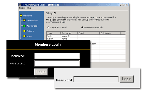 HTML Password Lock - программа для тех, кто хочет ограничить доступ к страницам или целому сайту с помощью пароля. Доступ к странице будет разрешен лишь после ввода правильного пароля. Поддерживается 2 типа авторизации: с помощью пароля или с помощью логина и пароля. Кроме этого, HTML Password Lock позволяет блокировать использование правой кнопки мыши на Ваших страницах, а также выделение и копирование кусков текста.