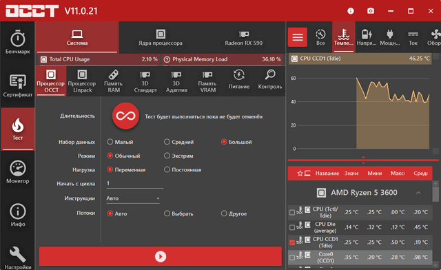 OCCT – портативная программа для тестирования аппаратных компонентов компьютера и выявления проблем в их работе. Программа позволяет выполнить проверку процессора, видеокарты, видеопамяти, а также стабильность блока питания и материнской платы.