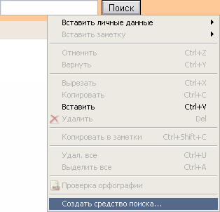Зайти на любую страницу нашего сайта и кликнуть правой кнопкой мыши по форме поиска. В контекстном меню выбрать пункт "Создать средство поиска...":