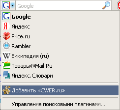 Для добавления поискового плагина CWER.ws в Ваш браузер необходимо: