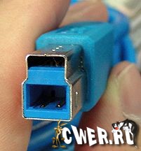 А вот и тот самый штепсель типа B, который нельзя подключить к одноимённому гнезду, соответствующему спецификациям USB 2.0. Разъёмы этого типа будут размещены на принтерах, сканерах и внешних накопителях, поддерживающих USB 3.0.