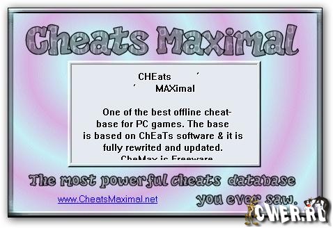 CheMax - наибольшая из известных на данный момент программ, которые являют собой базу данных с кодами для игр. Простой и красивый интерфейс, малый размер, и при этом огромное количество представленных игр. Особенностью базы является отсутствие в ней хинтов и прочей “отсебятины“, вашему вниманию представлены только коды (cheats, hex-cheats) и пароли (passwords).