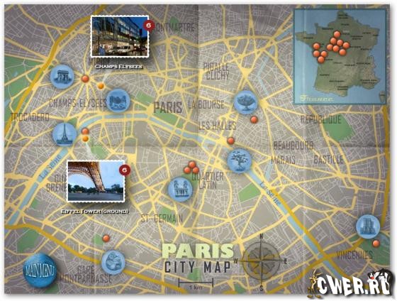 Кроме известных архитектурных памятников, которые Вам предстоит отыскать, в Париже есть что-то особенное для каждого посетителя! Найдите самые известные места столицы Франции и приготовьтесь дать интервью для журнала Travelogue 360! Отыщите предметы, спрятанные в Эйфелевой Башне, на Елисейских полях, у Триумфальной арки и в других парижских достопримечательностях! Побывайте во всех 22 местах Парижа, чтобы как следует повеселиться и узнать что-то новое!