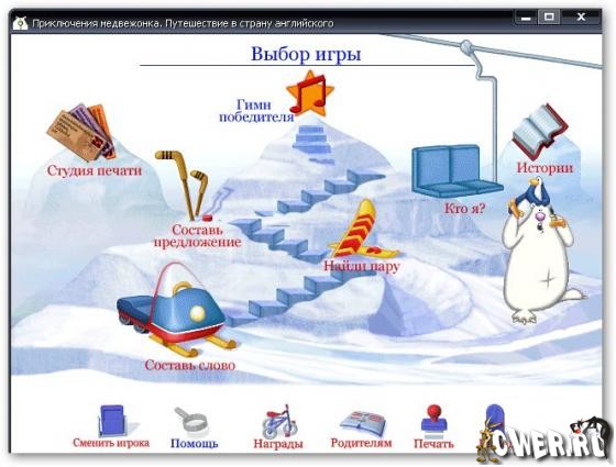 Если ваш ребенок любит веселые игры и совершенно не терпит нудных уроков, пригласите его в гости к Белому Медвежонку. Этот симпатичный увалень и его маленький друг Пингвин живут далеко-далеко на Севере, на большой льдине. Приятели очень любят играть и веселиться, и, конечно же, все забавы у них чрезвычайно полезные!Участвуя в играх, ребенок выучит английский алфавит, научится правильно писать слова и составлять предложения. Закрепить достижения можно, читая книгу с уморительными историями о Медведе и Пингвине: все фразы в ней озвучены и подсвечиваются при чтении, как в караоке. А самых прилежных учеников ждет победный гимн собственного сочинения!