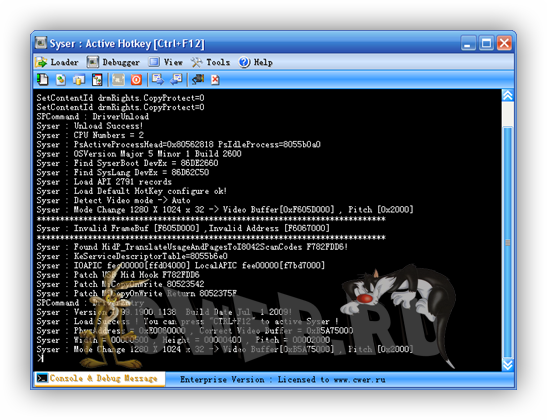 Syser Debugger - отладчик уровня ядра с графическим оконным интерфейсом от китайского разработчика. Позволяет отлаживать как приложения, так и драйвера. Сочетает в себе функции IDA Pro, SoftIce и OllyDbg. Отладчик - это вещь необходимая для создания программ. Однако многие из тех, кто пишет компьютерные программы и пользуется отладчиком, не в курсе того, каковы принципы и механизмы его работы. Данная программа имеет возможность подсветки листинга дизассеблера, динамическую загрузку и выгрузку, поддержку работы с клавиатурой и мышью, поддержку юникода и многое другое.