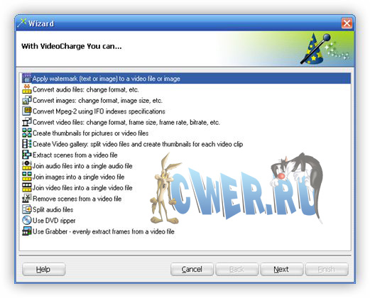 VideoCharge Full - программа, обладающая множеством возможностей, которые позволяют совершать любые операции с видео файлами за несколько кликов мыши. Программа может быть использована для разрезки видео и аудио файлов на несколько частей, объединения нескольких файлов в один большой медиа файл, извлечения или удаления сцен в видео роликах, создания эскизов изображений из видео файлов, добавления водяных знаков на видео и графические файлы, пакетной обработки нескольких изображений и многого другого. Кроме того, утилита позволяет обрабатывать на лету видео файлы (без декомпрессии и последовательного сжатия каждого кадра), имеет поддержку работы через командную строку, а также включает в себя встроенный FTP клиент для публикации готовых файлов в сети. Программа оптимизирована для обработки большого объема файлов и поддерживает большинство популярных видео и графических форматов.
