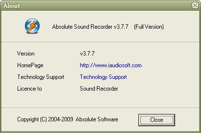 Absolute Sound Recorder - позволяет записать звук с любого источника: микрофон, линейный вход, аудио сигналы из Интернет, аудио/видео проигрывателя, игрушек и любой другой звуковой сигнал который поступает на звуковую карту. Записанный звук Absolute Sound Recorder может сохранить в большинстве распространенных аудио форматах, среди которых WAV, MP3, WMA и т.д.
