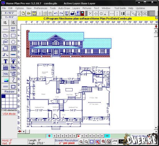 Программа поддерживает две меры измерения: американское (дюймы) измерение и метровое измерение. Готовый план помещений вы можете распечатать на принтере. Вы можете выбрать особый размер или максимальный размер на весь лист бумаги при печати черчежей. Home Plan Pro заменяет многие САПР программы, т.к. в отличие от них, эта программа легче в использовании и понимании.