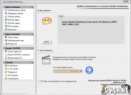 Несмотря на то, что интерфейс программы достаточно прост, разработчики постарались сделать программу еще понятнее для пользователя и сделали мини мастер Getting Started. Предлагается выбрать из списка операцию, которую вы хотели бы произвести в программе. Кроме этого, доступно несколько десятков советов, раскрывающих возможности программы. Ознакомившись с ними, вы будете знать, как вам может пригодиться программа.