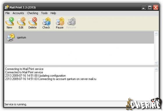 Frogmore Computer Services Mail Print - программа позволяет распечатывать входящую почту по протоколу POP3. От пользователя требуется только установить данную программу, установить интервал проверки почты и ждать входящих сообщений, точнее, ждать ничего не нужно - при получении новых писем, программа распечатает их на вашем принтере мгновенно. Поддержка защищенного соединения означает, что ваши сообщения не будут перехвачены, а встроенные фильтры позволят вам распечатать только те сообщения, которые вы хотите. В настройках программы вы сможете указать принтер на который должна идти печать входящих сообщений и количество копий документа. Также данная программа, при получении новой почты, позволяет проигрывать сигналы, уведомляющие вас о входящих сообщениях.