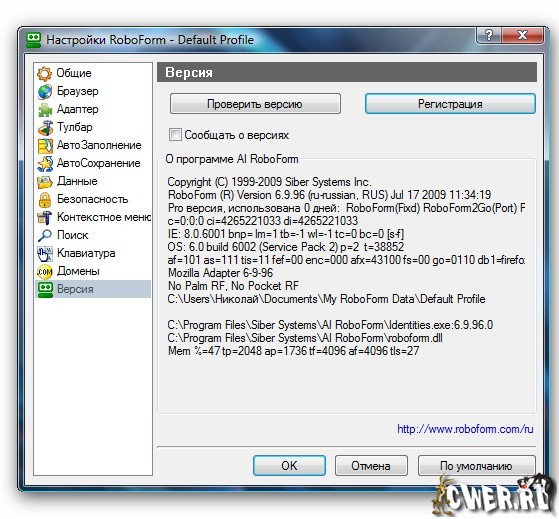 И вновь обновился плагин, предназначенный для автоматического заполнения веб-форм. После регистрации на различных веб-сайтах приходится запоминать регистрационные данные и вводить их вручную. Эта программа позволит запомнить регистрационные данные и подставить их в нужные места на веб-сайтах при необходимости. AI RoboForm может делать следующие операции: сохранит пароли из парольной формы; автоматически заполнит пароли; автоматом зайдет в сетевые аккаунты; сгенерирует случайные пароли; шифрует пароли; может хранить пароли на любом съемном диске; спасает, восстанавливает и печатает пароли. AI RoboForm работает в операционной системе в качестве дополнения (плагина) к различным браузерам: Internet Explorer, AOL, MSN, Mozilla, Firefox, Netscape.