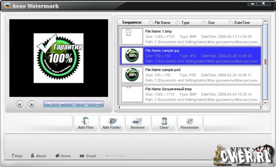 Данная программа может обрезать и изменять размер изображений, в пакетном режиме переименовывать изображения, настраивать качество изображений. Программа поддерживает различные типы картинок. Aoao Watermark поддерживает пакетный режим во всех операциях. Например, вы хотите добавить ваш знак к трем сотням картинок в форме 800x600 пикселей, Aoao Watermark может выполнить такую операции за 10 секунд!