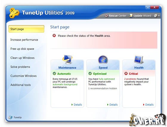 TuneUp Utilities 2009 - компактный пакет системных утилит с мощными возможностями: чистка и исправление ошибок системного реестра, восстановление и безвозвратное удаление данных, оптимизация оперативной памяти, менеджер процессов и автозагрузки, корректное удаление ставшего ненужным ПО, управление сетевыми параметрами, оптимизация интернет-соединения, настройка "скрытых" параметров системы, подробная информация о системе и многое другое.