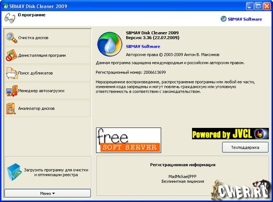 Скачать программу SBMAV Disk Cleaner 2009 v3.36.0.9282 (3 МБ):