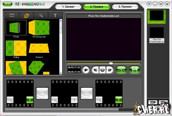 Это программное обеспечение для конвертирования VHS видео кассет на CD или DVD. При помощи данной программы вы сможете записывать на DVD собственные записи любимых телепрограмм, видео клипов, фильмов и т.д. Для вашего удобства в программу встроены дополнительные возможности по созданию титров и меню. Honestech предлагает также использовать красивые экранные эффекты и фильтры.