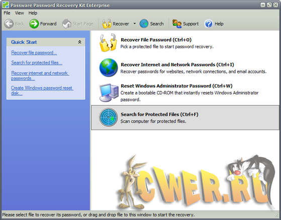Passware Kit Enterprise - набор инструментов для подбора или определения паролей к файлам (более 100 видов), созданными самыми известными в мире программами: Office, Excel, Word, Windows XP/2000/NT ,Access, Outlook, Outlook Express, Exchange, WinZip PKZip ZIP, WinRAR RAR, VBA Visual Basic modules, Internet Explorer/ EFS - Encrypted File System, FileMaker/ Acrobat, Quicken, QuickBooks, Lotus 1-2-3, Lotus Notes, Lotus, Organizer, Lotus WordPro, Quattro Pro, Backup, Project, MYOB, Peachtree, Paradox, ACT!, Mail, Schedule+, Money, WordPerfect и MS Office 2007, а также определения ключа Windows XP/2000/NT.