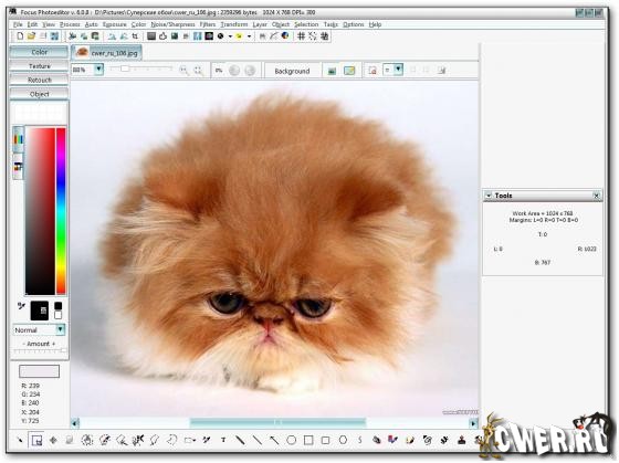 Focus Photoeditor - мощный и легкий в использовании редактор изображений, который вы сможете использовать для обработки и коррекции цифровых фотографий, а также для создания графики для ваших веб-сайтов, дома и офиса. Вы сможете получать фотографии с жесткого диска, другого приложения, а также с помощью сканера или фотокамеры и начинать их немедленную обработку в данном редакторе. В программе имеются функции для автоматического преобразования фотографий за один клик, благодаря чему вы сможете улучшить ваши фотографии за считанные секунды. Также вы сможете самостоятельно отредактировать внешний вид изображений при помощи встроенных в программу инструментов. Focus Photoeditor является неплохим выбором для новичка и для профессионального фотографа, т.к. в нем сочетаются множество качественных функций легких в использовании и настройке.