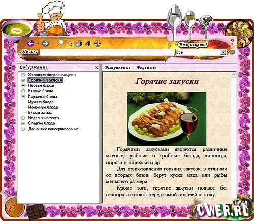 «Записки Шеф-Повара» – это простой и удобный в использовании кулинарный сборник! Здесь Вы можете найти множество различных кулинарных рецептов практически на все случаи жизни. Удобная интеллектуальная поисковая система поможет Вам подобрать блюда, найти конкретный рецепт по его названию; а удобный классификатор позволит быстро и просто сориентироваться в многообразии блюд.