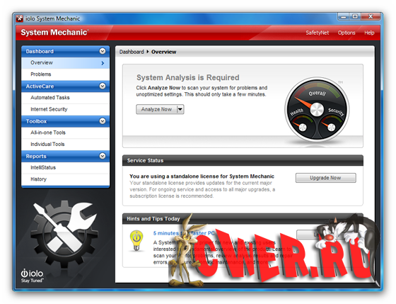 System Mechanic - это комплекс программ, предназначенный для поддержки работоспособности вашего компьютера на высшем уровне! System Mechanic умеет искать ненужные и повторяющиеся файлы, чистить реестр, находить неверные ярлыки, удалять нерабочие ссылки на удаление программ, отслеживать изменения, сделанные при инсталляции, управлять автозагрузкой, производить очистку жесткого диска от ненужных файлов, проводить дефрагментацию и многое многое другое.