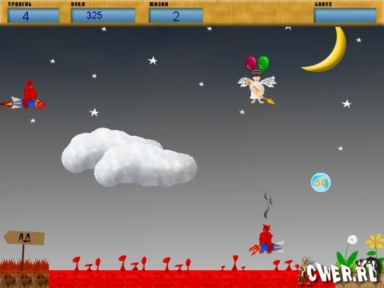 Всяческая нечистая сила покушается на мирную жизнь в Раю! Встаньте на защиту границ обители ангелов. Не теряя равновесия и бдительности, дайте отпор преступникам и соберите как можно больше бонусов. Но если Вы сделаете хотя бы одно неосторожное движение, то окажетесь в кипящей лаве. Вперед на встречу опасности. Удачи!