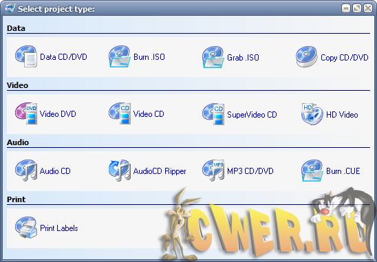 - Запись аудио дисков (*.wav; *.mp3; *.ogg; *.mid; *.wma; *.aac; *.mp4; *.m4a; *.xm; *.mod; *.s3m; *.it; *.mtm; *.mo3)