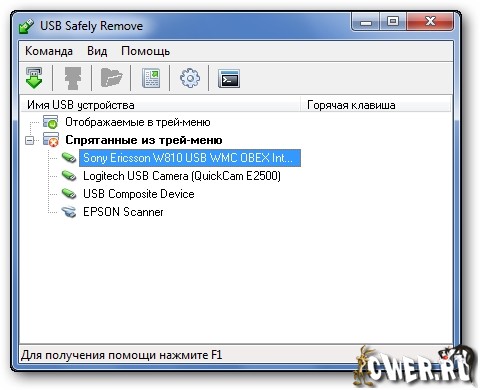 Обратите внимание на понятные имена устройств; USB Safely Remove определяет истинные имена устройств. Это позволяет отключать именно нужное Вам устройство!